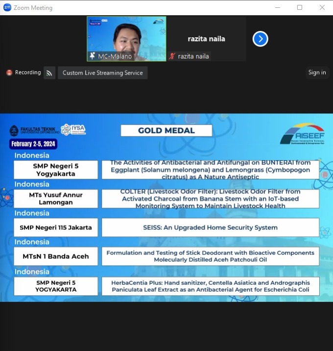 BANDA ACEH, READERS — ARC-PUIPT Nilam Universitas Syiah Kuala (USK) berhasil mengantarkan peneliti muda Aceh, Razita Naila dan Aditya Achmad meraih medali emas pada kompetisi internasional AISEEF (ASEAN Innovative Science Enviromental and Entrepreneur Fair) 2024.