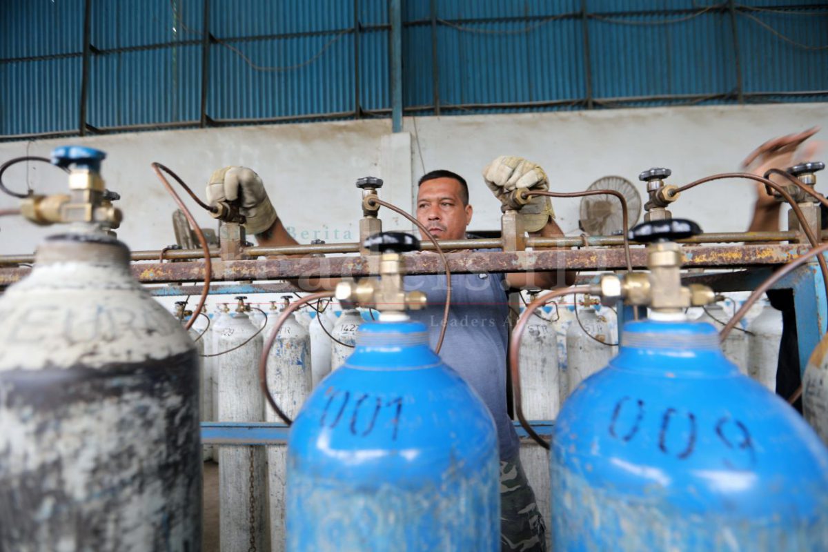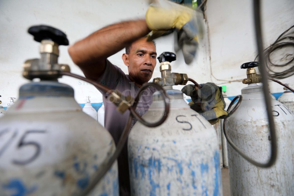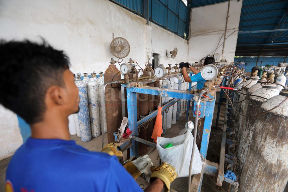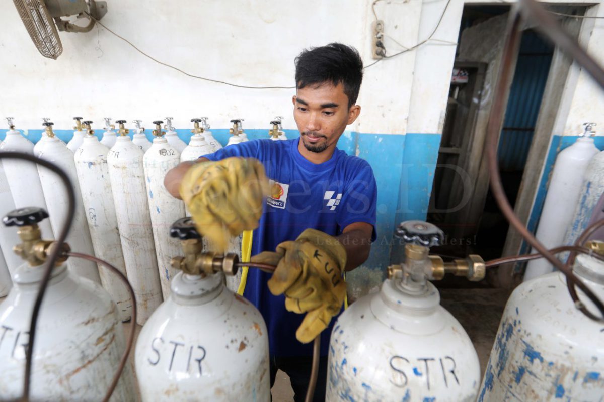 Proses pengisian oksigen sedang berlangsung. Foto: Hotli Simanjuntak/readers.ID