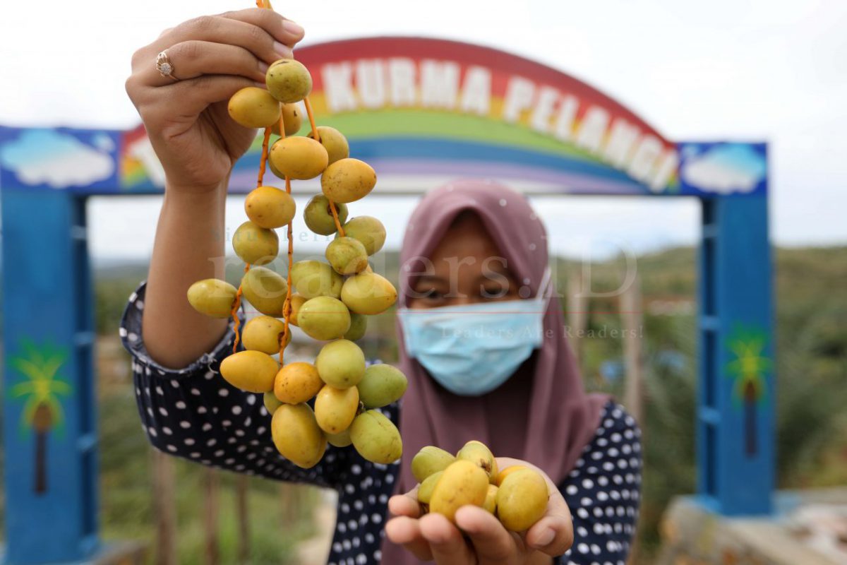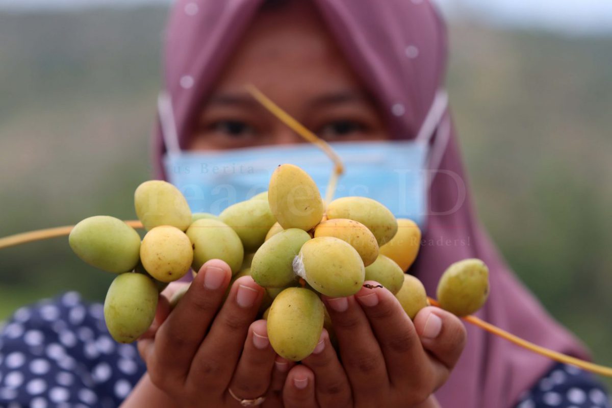 Buah kurma yang sudah matang dan baru dipetik dari pohonnya dijual dengan harga Rp 450.000/kg. Kurma muda menjadi menu favorit berbuka puasa yang bisa dimakan maupun diolah menjadi jus kurma yang segar di kawasan ini.