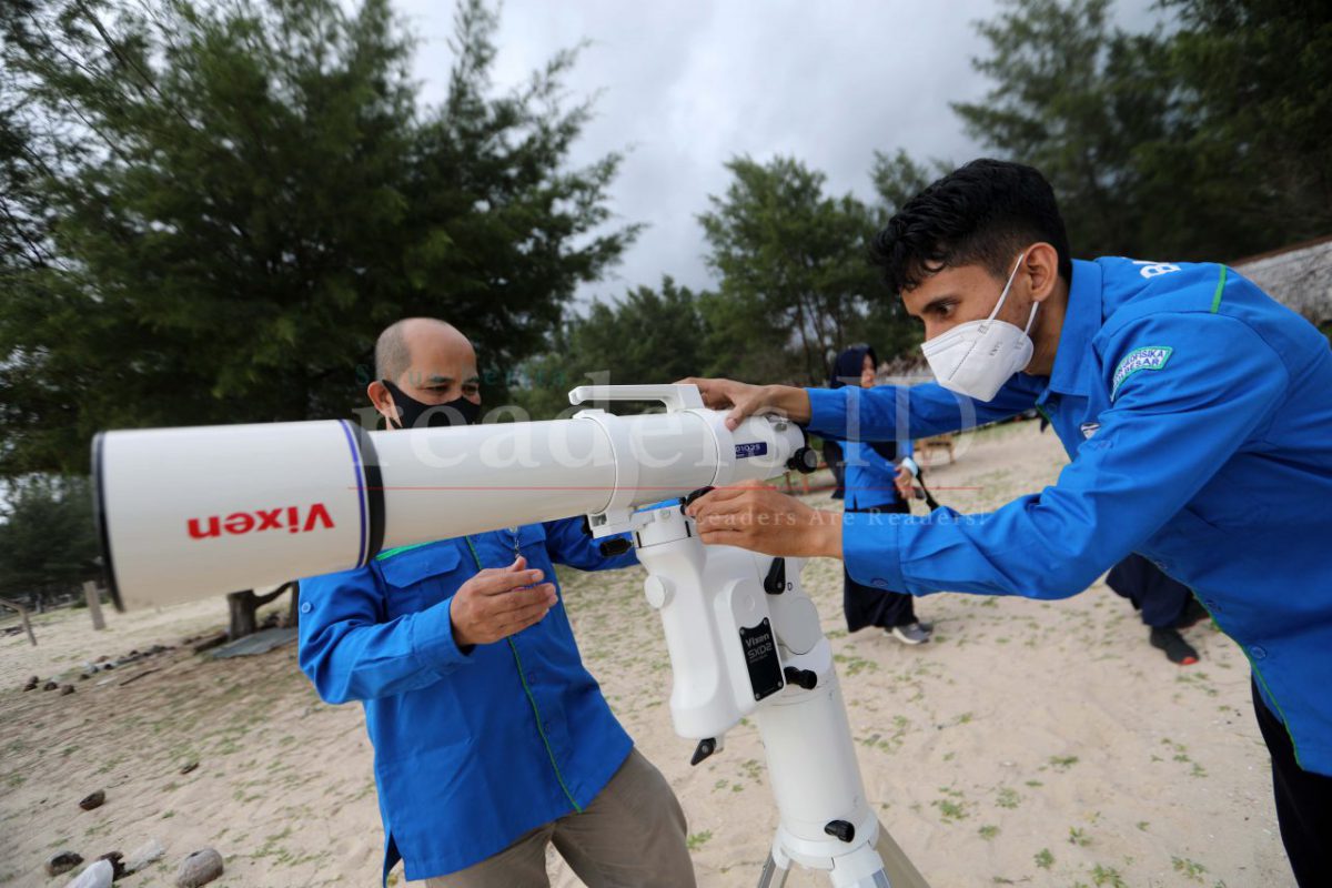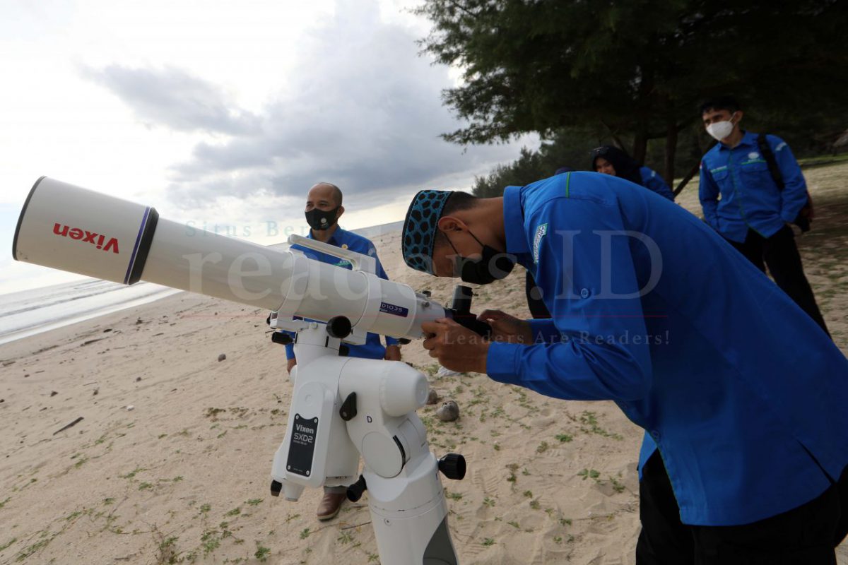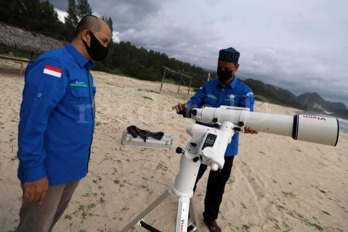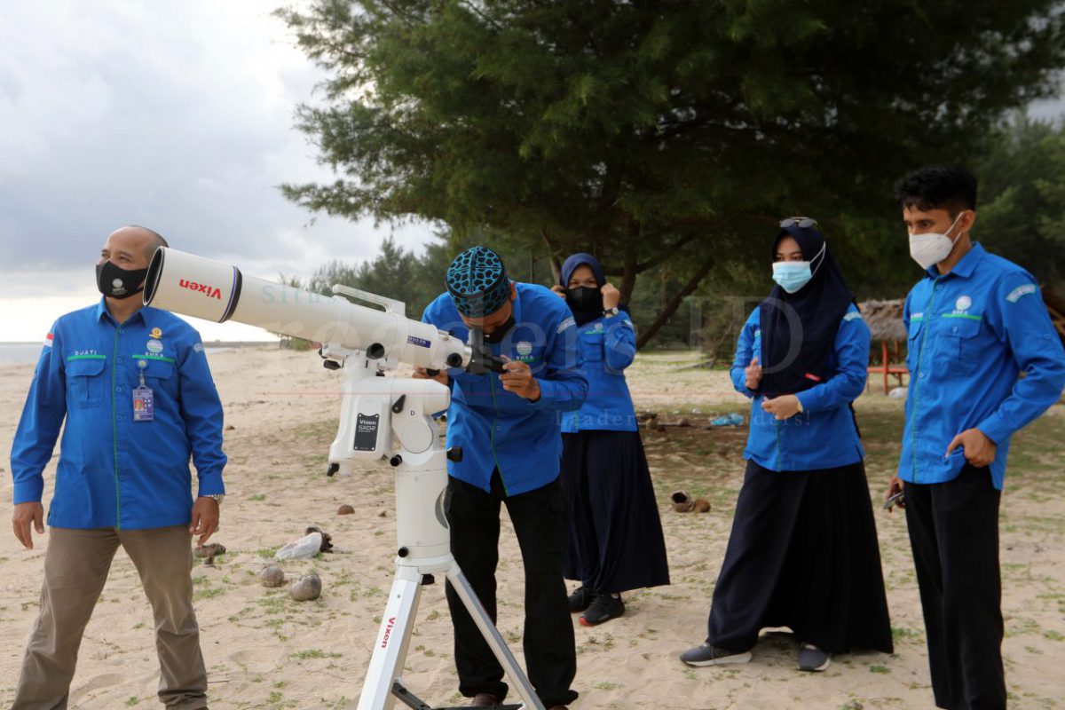 Petugas Badan Meteorologi, Klimatologi, dan Geofisika (BMKG) sedang mempersiapkan alat untuk melakukan pemantauan hilal di Lhok Nga,Aceh Besar, 11 Mei 2021. BMKG bekerja sama dengan tim Falakiyah Kanwil Kemenag Aceh melakukan rukyatul hilal, petang ini, Selasa, 11 Mei 2021 atau bertepatan dengan 28 Ramadhan 1442 H.