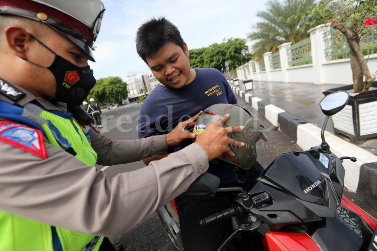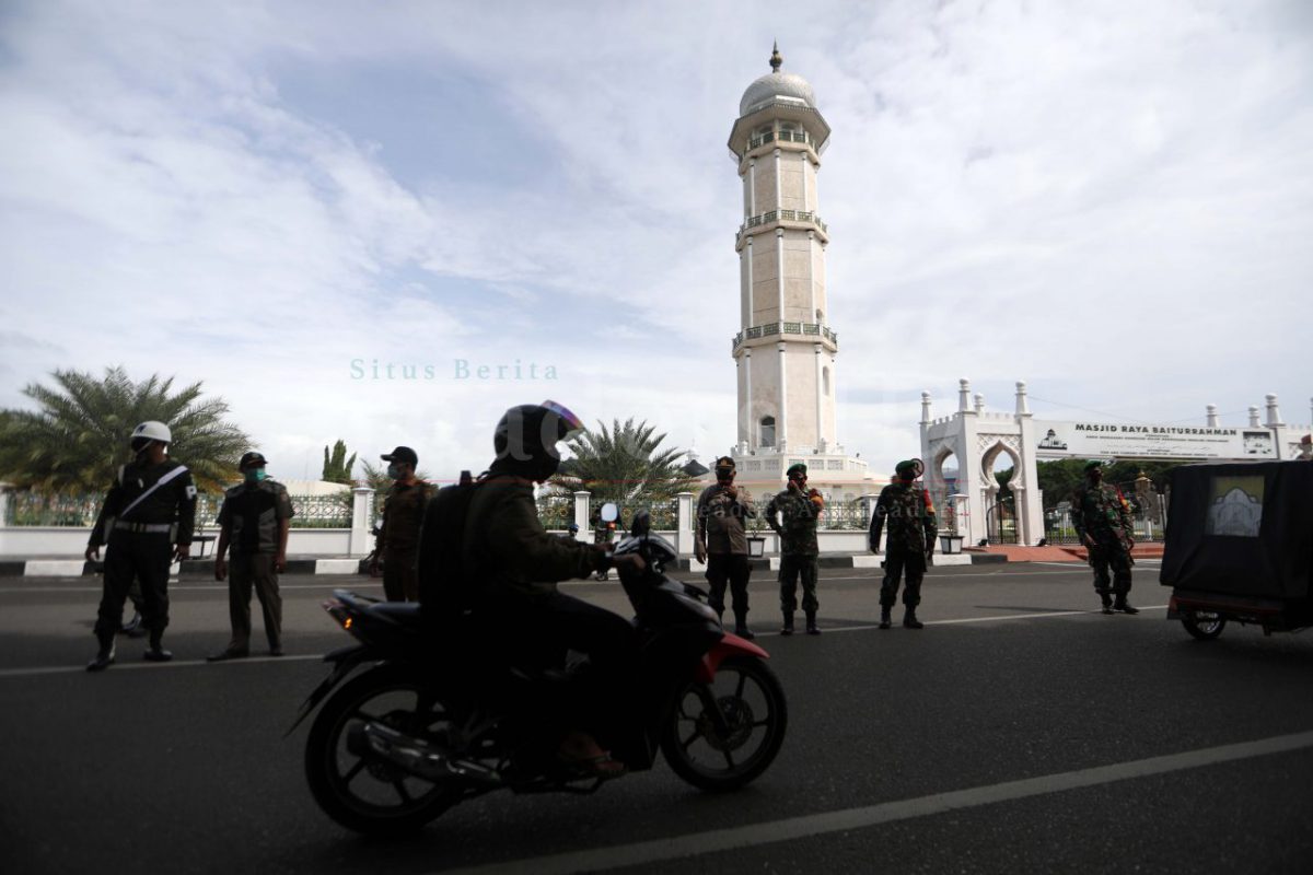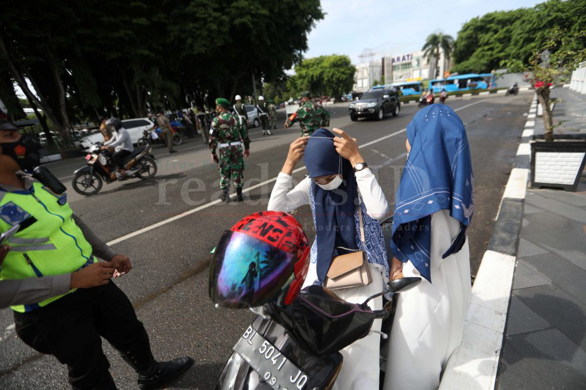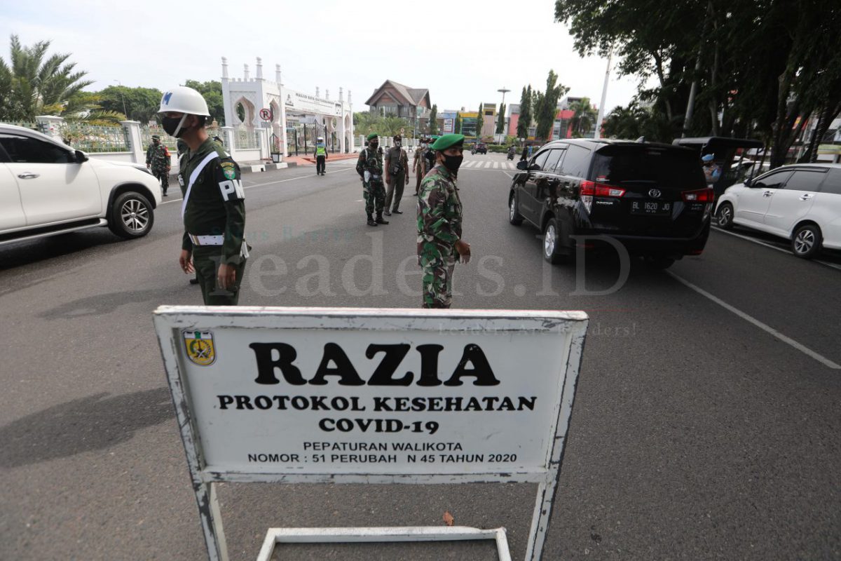 Petugas gabungan sedang melaksanakan razia protokol kesehatan secara rutin di wilayah hukum Banda Aceh, 28 Mei 2021. Pemerintah Aceh meningkatkan razia protokol kesehatan di tempat-tempat umum seperti jalan umum, cafe, warung kopi dan tempat umum lainya sebagai upaya mencegah penyebaran COVID-19 yang semakin mengkhawatirkan.