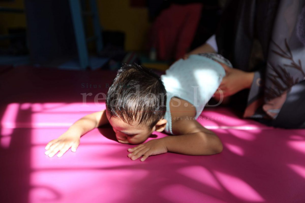 Terapis sedang melakukan perawatan terhadap anak difabel celebral palsy di rumah Sahabat Difabel Aceh, dikawasan Meunasah Papeun, Krueng Barona Aceh Besar, 25 Mei 2021. Yayasan Sahabat Difabel Aceh (YaSDA) memiliki beberapa unit pelayanan sosial salah satunya adalah Rumah Cerebral Palsy (RCP). RCP merupakan pusat terapi dan edukasi bagi anak disabilitas khususnya anak-anak dengan cerebral palsy. Pelayanan yang diberikan sebagian besar tidak berbayar bagi keluarga miskin. Yayasan ini membantu keluarga yang memiliki anak dengan kebutuhan khusus seperti cerebral palsy, keterbatasan tumbuh kembang, gangguan bicara, gangguan motorik halus dan down syndrome.