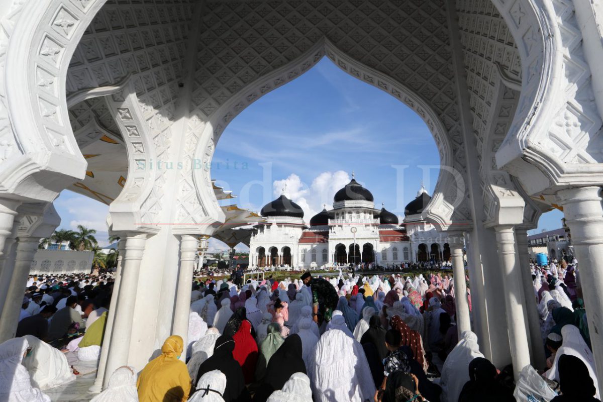 Foto Feature: Umat Muslim Melaksanakan Salat Ied Di Mesjid Raya Baiturrahman