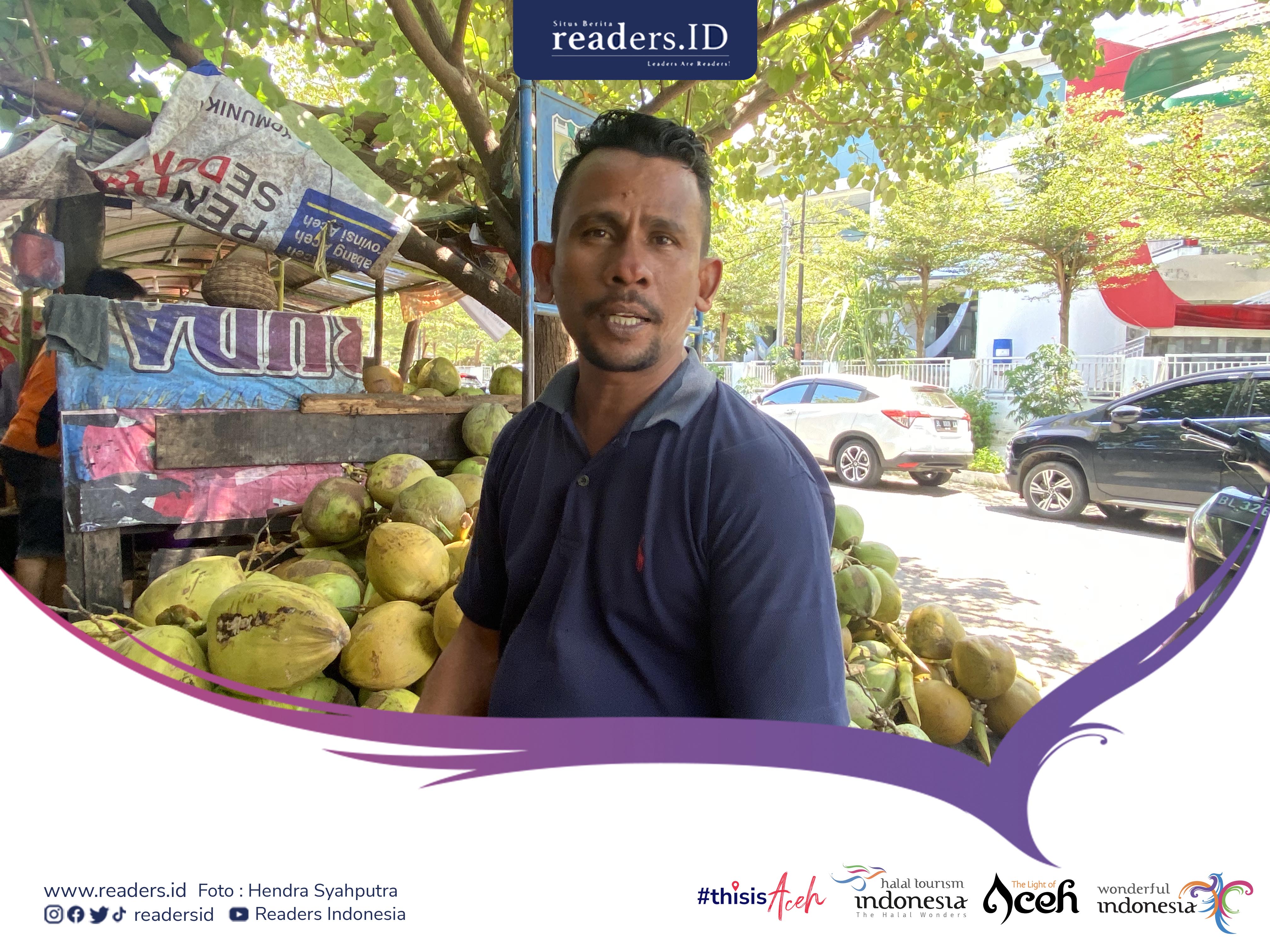 Readers.ID/Hendra SyahputraPandemi Covid-19 telah mengubah banyak hal. Salah satunya cara masyarakat bertahan dalam mencari rezeki. Banyak sektor usaha yang turun drastis saat mempertahankan bisnis mereka karena tidak bisa bertemu pembeli. Itu juga yang dirasakan salah seorang pedagang kelapa muda, Irfan (42), yang berdagang di daerah Kampung Baru, Kecamatan Baiturrahman, Banda Aceh.