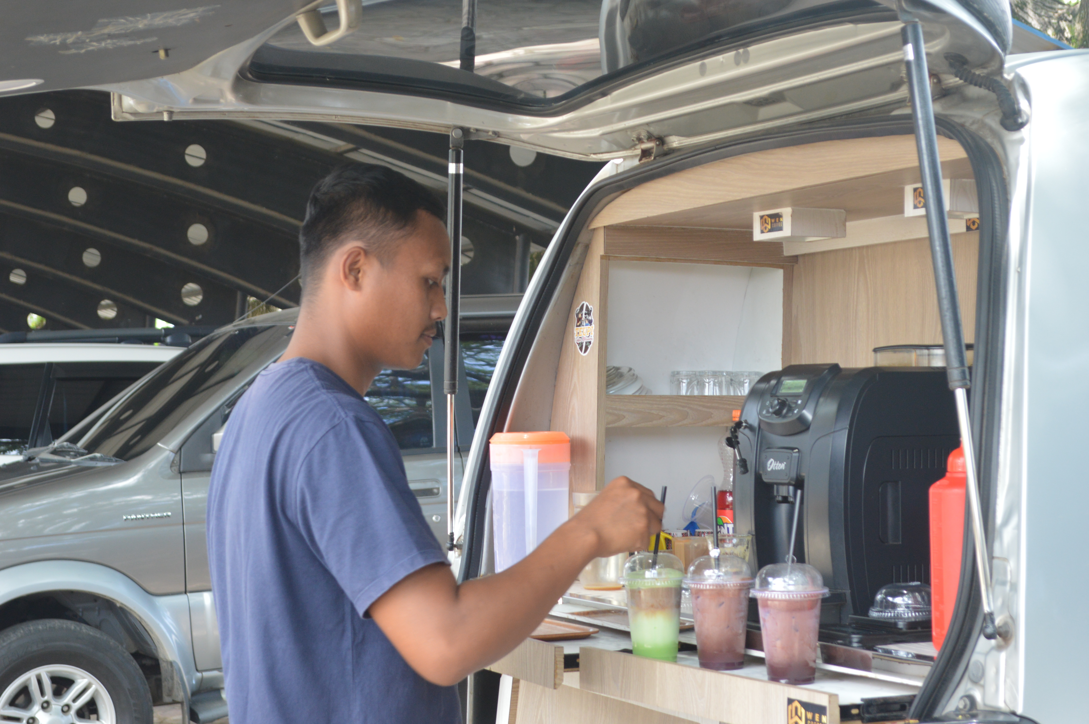 Ya, bermodal yakin dan kemauan, akhirnya sosok Muhammad Rizal mampu membangun usahanya dengan menjual minuman kopi dengan mobil kopinya.