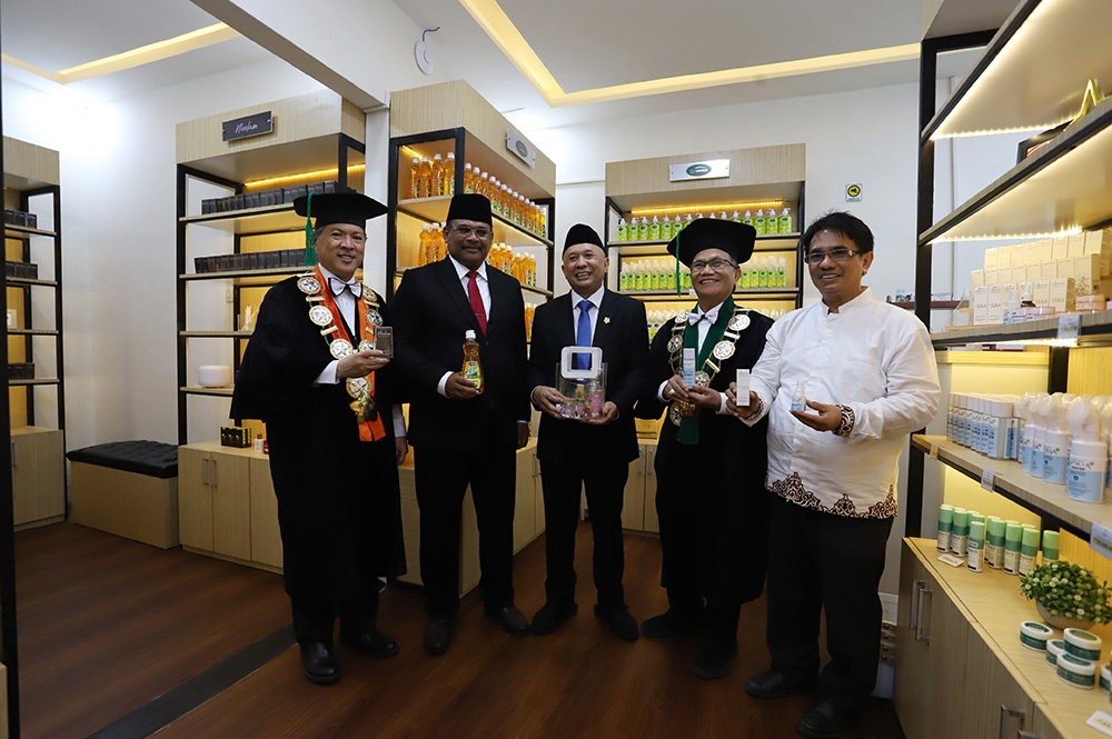"Proses tersebut memudahkan minyak nilam dari Aceh dapat dikembangkan menjadi berbagai produk turunan seperti yang diperlihatkan dalam USK Store ini," ujar Rektor.