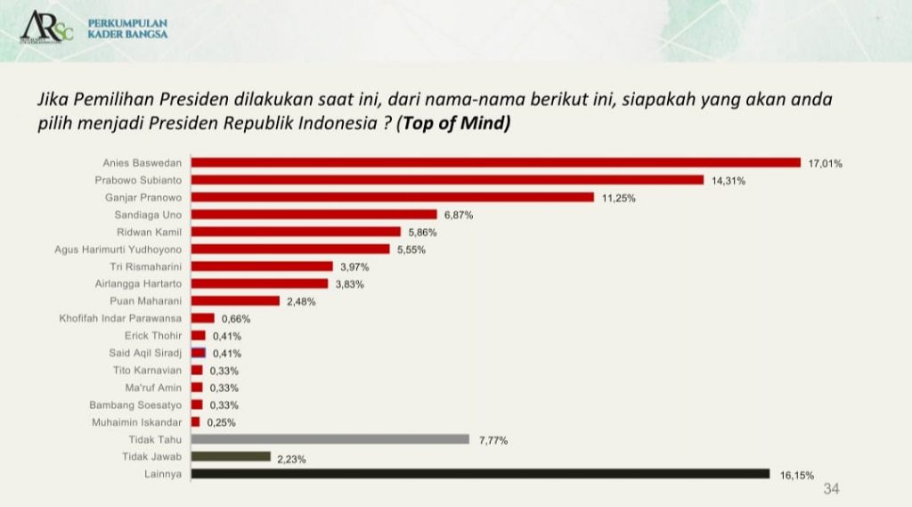 Lanjutnya, hasil ini konsisten dengan tiga survei sebelumnya oleh Indikator Politik, Balitbang Kompas dan LP3ES.