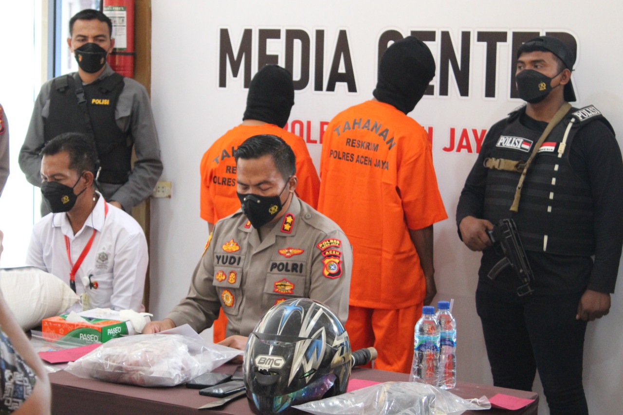 Kapolres Aceh Jaya AKBP Yudi Wiyono mengatakan, tiga warga tersebut ditangkap di lokasi terpisah. SI dan IRH ditangkap di rumahnya, sedangkan IAA yang juga sebagai penadah diciduk di lokasi usaha miliknya.